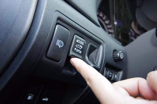 | 位於方向盤基座左手方的敞篷開關鍵相當就手,20餘秒就能輕鬆開篷。 |