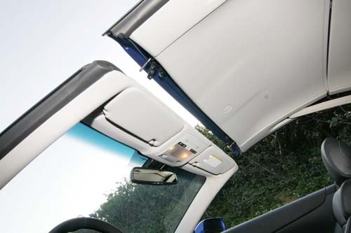 說到這組鋁合金硬頂,約略20餘秒的開/關篷作動時間,讓它成為現今具備水準的快速三片式硬頂之一。更特別的是「閉篷減速機制」設計,讓頂篷在接合之時宛如會踩煞車般,降低接合音之餘亦提昇機件使用壽命。