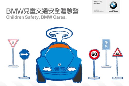 基於“兒童安全”已成為近年來全球廣泛重視之議題,BMW台灣總代理 汎德公司始終關心並積極地在台推廣兒童交通安全意識:2008年首屆「兒童交通安全體驗營」獲得廣大媒體、家長與孩童的參與及迴響;2009年假大直美麗華購物中心前廣場舉辦的第二屆「BMW兒童交通安全體驗營」更吸引了超過4,000多位大小朋友的參與;而為了讓更多台灣地區的朋友能夠親身參與,並讓兒童交通安全意識擴展到全台灣各地,繼5月在台南與嘉義的成功舉辦後,「BMW兒童交通安全體驗營」即將於6月7日與14日在高雄市熱烈豋場,竭誠歡迎有興趣的大朋友與小朋友們,洽詢報名專線(07)3411300分機299,以預約活動參加梯次,與BMW共度愉快且充滿教育意義的週末假期!