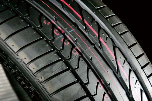 Bridgestone RE001以非對稱設計胎紋為新世代設計趨勢,加上內側雙直設計提供直線走行方向穩定性,加上3D中央塊狀花紋使得路感更為敏銳,操控表現上更能得心應手。中心胎面彎曲弧線溝槽設計讓水分能快速排除。不過為了使得價格更為平易近人以持續推廣性能胎,國內總代理將部分規格國產化以減少欠品產生,採用與日本相同製造技術水準讓價格與性能都可兼顧。