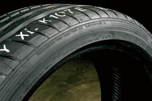 | 輪胎除了胎紋與磨耗指數(Treadwear值)外,輪胎製造日期同樣不可忽略,由於保存期限多半以五年為分水嶺,建議使用三年內新胎都能維持正常其工作性能。 |
