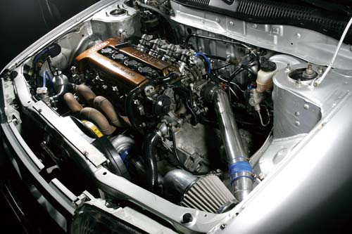 要跑100~200km/h怎麼可能少得了「西螺號P10」,SR20DET的本體也僅更換上CP鍛造活塞,另外為了提昇低速的反應,壓縮比則是設定在相當高的9.5:1(小朋友不要學叔叔有練過),其餘的連桿、曲軸及波司也都維持原廠。