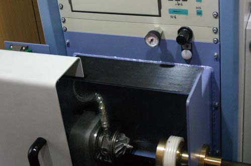 | 進排氣兩端的葉輪在12000~16000rpm時,微小的金屬密度不均將被放大,須利用平衡檢測機查出葉片重心的偏疑點。 |