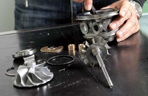 | 渦輪機想要反應靈敏,不止滾珠軸承、鈦合金葉片或雙通道進氣端這些昂貴選擇,在進氣葉片的光滑面上顆出紋路,也是一種方法 |