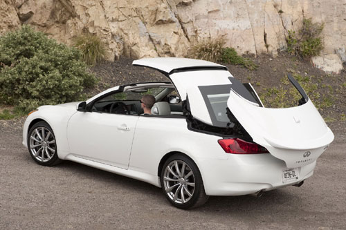 G37 Convertible配置三片式硬頂敞篷機構,透過精密細緻的多連桿配置,擁有收納重心低、操作速度快、收納空間小的三大優點。可降低重心而有效提升車身操控性。而三片式高剛性頂篷開關僅需25秒,且開篷時車頂角度可向後傾斜,即便雨後開篷,車頂殘留水珠將向後引流,不會滴進車內,隨車標配的空氣動力迴風網更能有效隔絕亂流,讓駕駛者享受寧靜安定的行車空間。
