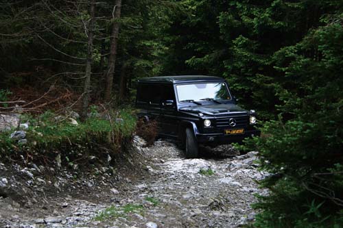 結束了工廠的拜訪後,Magna Steyr派出了四名專業測試車手載著我們前往一旁的Schockl Mountain,使用車款則為G320 CDI與G500,沒有派出Edition 30雖然讓人有些失望,但想想看此行主要是越野之旅,有無Edition 30也就不是那麼重要了。在前往山區的柏油路上,無論G320 CDI還是G500都可展現充沛的加速動能,G320 CDI由於是使用第三代共軌直噴系統,因此靜肅性、運轉順暢度均有不錯的表現,而G500的V8心臟更可發出澎湃的聲浪,一股王者的氣勢也油然而生。