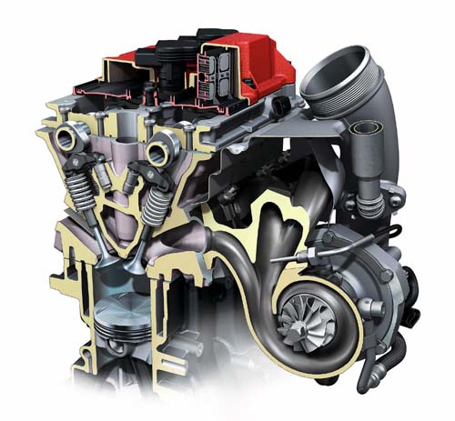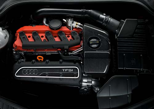 這具五汽缸引擎的體積相當緊緻,並且所有的組件大多是以輕量化金屬製造,刻意選用的大尺寸渦輪增壓器讓增壓值上限可達1.2 bar,在引擎權力輸出時,特製的中間冷卻器可有效降低近氣溫度達80%。當駕駛人按下位於中控檯上的Sport按鍵時,安裝於排氣管內的閥門會打開,除了排氣聲響會變得更為飽滿外,油門的反應也會變得更為直接敏銳。