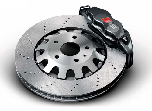 | 特製的煞車碟盤以鋁合金製造,中心盤與外盤則以空心插銷連接。 |