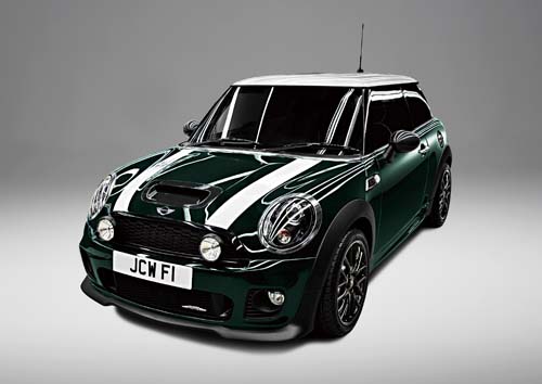 代表英國賽車傳統的綠色車身帶出Mini JCW WC 50的精神主軸,為紀念Cooper車隊於1959年首次贏得F1世界冠軍,這部Mini JCW WC 50週年紀念版以Mini Cooper S JCW為基礎並再次提升性能層級,外觀擁有重新設計的空氣力學套件,並採用碳纖維材質製作的引擎蓋進氣口、後視鏡護蓋及車尾下方的分流器(Diffuser)。