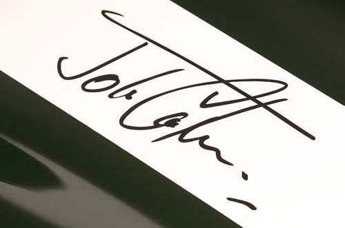| Mini JCW WC 50引擎蓋上的兩道白色飾條上有John Cooper本人的復刻版簽名。 |