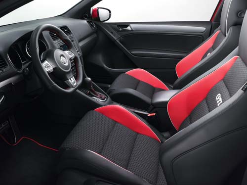 內裝陳設亦十分講究個性化,藉著各種裝飾性零件與材質的運用,讓車內空間變得更具運動感;打開車門的一瞬間即可發現以鋁合金打造的迎賓飾板上刻著「GTI Worthersee 09」的字樣,冷氣出風口外框則施以光澤黑烤漆,調整風向的控制鍵則加上了刷紋鋁合金飾塊。車內的地毯則裝上幾乎歷代GTI特別式樣車都列為標準配備的紅色滾邊地毯,這些車內的裝飾品更進一步強化GTI的風味。