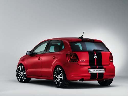 與Golf GTI相似,這部Polo亦採用紅色車身塗裝,但使用的「Flash Red」漆料則與「Firespark Metiallic」不同,另外則追加了兩條縱貫車身的黑色彩帶塗裝。輪圈則換上了名為Budapest的特製18吋輕合金輪圈,巧妙填滿了Polo的輪拱;輪圈與車身構成的紅黑對比更是成為讓人興奮的場景;除了車身上的黑色彩帶之外,水箱罩、後視鏡外蓋以及前保桿進氣口等部位均採用黑色塗裝,以強化視覺上的對比;此外排氣系統也刻意調校出更具運動感的聲浪。