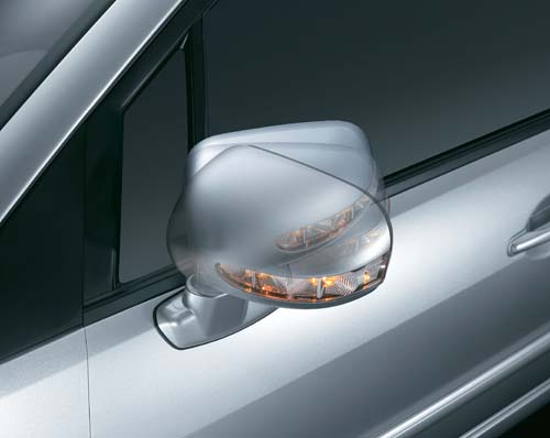 | 「智慧型後視鏡」也是新年式新增配備之一,利用遙控器上鎖車輛時、其會自動收折。若是收折後忘記開啟,待車速達30km/h以上時,它也會自動展開 |
