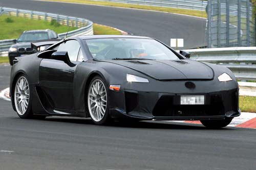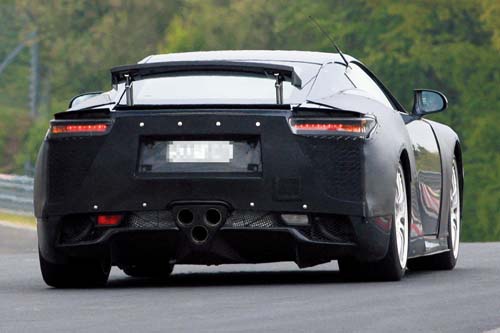 這輛在賽道上奔馳的LF-A車側線條與2008年發表的Roadster修訂版本極為類似,隱藏式自動升降尾翼也看得十分清楚,並且配備了照後鏡、齊全的燈組等,我們可以依此斷定這是完成度達90%以上的量產試作車。但特別弔詭的地方是加大的梯形氣壩、三角進氣口,以及引擎蓋上多開的雙散熱鰭孔。