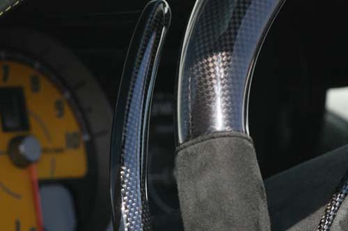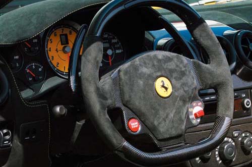 | 內裝看起來雖未有任何更動,但方向盤實際上已換為全碳纖製品,加長的手排換檔撥片也提高便利性。 |