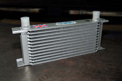 | 改裝渦輪之後、引擎的溫度勢必升高,為防止油溫過高影響潤滑性能,13排的機油冷卻器是必要的改裝 |
