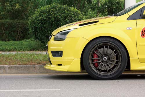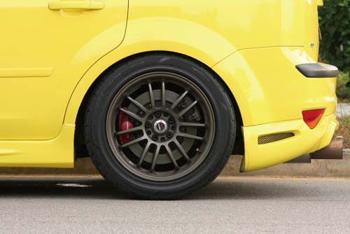 即便Focus天生具有歐系車型強健的剛性與紮實車身,但面對激烈操駕與大馬力時,車身剛性仍會暴露其不足之處,為了改善此問題車主特地選用改裝業界耳熟能響的Summit產品,在有效彌補車體前後結構強度之下,使得以往容易發生的車體扭曲問題得以獲得改善,不過剛性增強對於操控表現仍僅有小幅度的挹注,為了大幅增進操控表現,包含仰角調整器、束角調整器與懸吊系統均改用YongXin部品,加上防傾桿也改由強化套件後,對於車輛操控上的精準性能完全由駕駛掌握,急速切入彎道或緊急變換車道時,車身轉向與動態上均有明顯的進步,但胎壁過軟的問題反而在此更加突顯出。另外對於操控表現同樣有加分作用的LSD在此車上同樣不可或缺,有效分配動力輸出使得山路與彎道的操控性得以大幅增加。