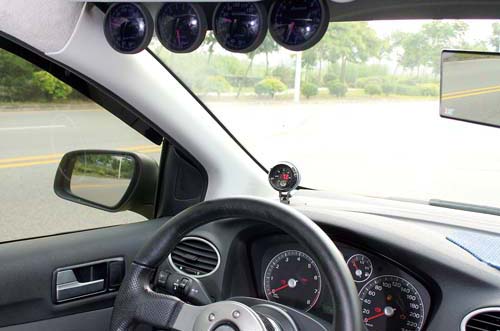 不過為了能夠確實掌握引擎運作狀態,同時有利於Tuner進行電腦程式細部調整,除了特別安裝上常見的油溫、油壓與水溫錶,一般自然進氣車極為少見的空燃比與排溫錶也額外加以安裝,滿滿的監控儀錶幾乎將車室營造成街車一拜的緊繃式樣。