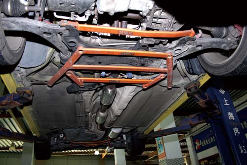 | 底盤方面,為了增加車體剛性與紮實度,車主特別選擇由台灣設計開發製作的Summit底盤結構桿,在強化前後車體同時還能增加操控性。 |