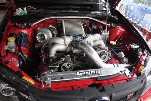 此外電腦方面,Tuner考量到重度賽道各個環節所需,為了有精密而細微的動力銜接調整,電腦系統特別交由Haltech E11v2完全取代。由於腹內精密化處理使得排氣量正好提昇至正2.5升,為了獲得更為強悍的動力表現,原廠渦輪機早已由HKS T04Z所取代,排氣系統也換100mm鈦合金中尾段,以有效紓解高轉速的排氣回壓,0.8Bar增壓值即有超越400hp的驚人實力。