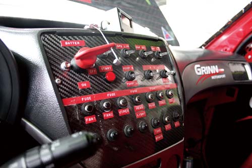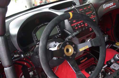 | 比照廠車式樣的打造手法,連車內中控儀錶也佈滿密密麻麻的控制鈕與按鍵,看來職業車手比賽時還有真多任務要同時進行呢? |