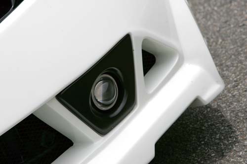 | 前保桿下方的倒三角形黑色霧燈蓋與正三角形進氣口,正是Mugen RR獨創的設計,擁有極高的辨識度,這點開發者當然不會忘記。 |