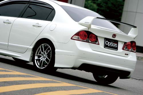 | 除了Mugen RR套件外,目前八代Civic改裝用空力套件以這款Mugen為一般版車款所打造的為主流,建議售價為前保桿:元、後保桿:元、側裙:元、尾翼:2600元。 |