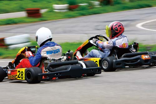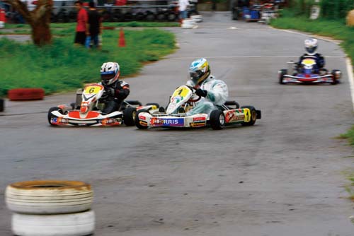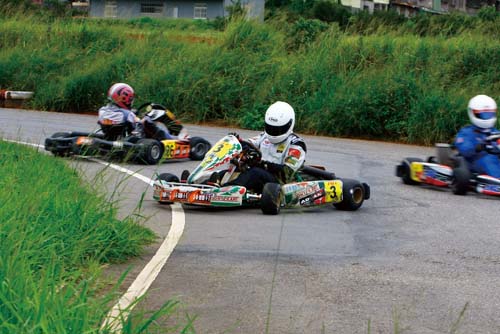 | Karting賽事只要不是入彎前的後車惡意頂撞前車,在彎中搶線的輕微碰撞則屬合法範圍。 |