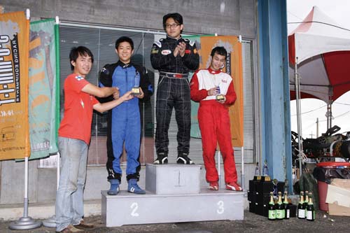 中午第一回合「初賽」正式開始前,天空開始飄起細雨,大會宣布所有車手限定改用雨胎參賽,擁有二套胎框準備的車手還好,預算有限的車手只有一套輪框可就得加緊換胎動作。在第一回合雨胎初賽中,排前三位的車手游智淵、王明?與湯宗翰,雖然組別分屬Senior與Master,但彼此間纏鬥相當激烈,尤其TSRC參賽年資僅第二年的Junior組黑馬好手王明?,在引擎出力調校順暢並搭配手控前煞車系統的優勢條件下,每每在直線底前利用Late Brake向對手發出攻勢,並做出36秒233的亮眼單圈成績(雨胎)。