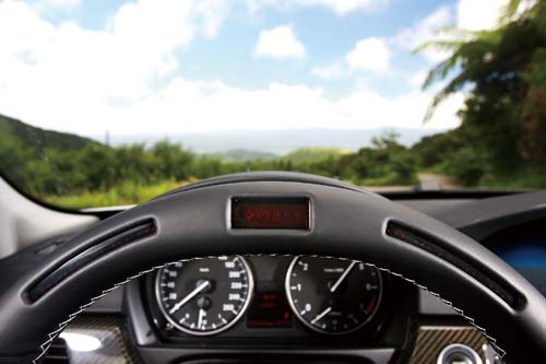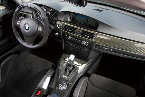 而降低25mm的跑車懸吊配上19吋低扁平比跑胎,更猶如在一把熊熊烈火上澆了汽油,讓這部323i看起來更熱、更猛,不過最讓人引發玩心的還是車內那組功能性十足的方向盤,在加入麂皮材質的同時,上半緣還多出兩個小按鈕、LED燈及位於正中央的小螢幕,具有引擎轉速提示、加減速與側向G值、圈數計時與0~400m加速測試的操作選項,讓人有如置身於F1賽車之中。