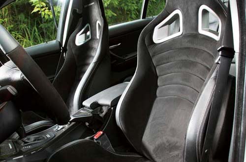 | 以大量麂皮搭配真皮包覆的可調式筒型賽車椅提供高水準的身體支撐,每張售價為116,000元 |