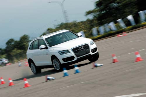 抵達ADE指定訓練場地後,跟著兩位曾在賽車界擁有豐富經驗與資歷的專業教練Mr. Harald Buttner和Mr. Christoph Klapper移動至起點待命起跑,開始正式體驗Audi Q5強悍的加速力道、靈活的操控特性以及高等的安全防護系統;訓練中特別針對國內路況特性,設計包括S型繞錐、急速轉彎、彎道操控以及ABS急停煞車等內容,教導如何利用細微的控制技巧,協助車身維持良好的穩定性與車頭轉向性,讓駕駛能從容避開前方緊急事故,徹底享受Audi Q5的迷人之處,而筆者也從中明顯感受到Audi Q5有別於SUV車款的煞停、轉向與操控能力。