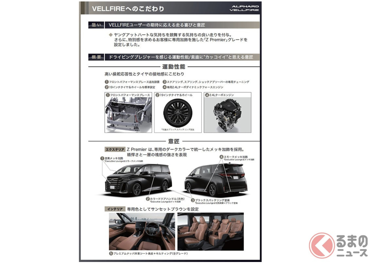 此外,Vellfire「Z Premier」還透過降低起步及日常行駛時的不悅引擎噪音,並對加速時的聲浪進行運動化調校,進一步提升駕駛樂趣。