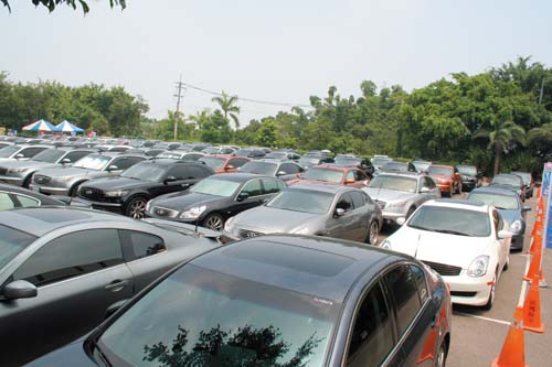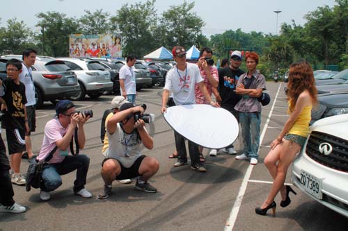 礙於當日天氣過於晴朗,還沒到11點現場氣溫早已攀升至37度,熱浪來襲迫使車友們提前入園休憩,不過熱情的主辦單位為了滿足許多車友「香車配美人」的攝影需求,因此現場特別請來3位模特兒讓聚會現場頓時間成為攝影大會。專業的攝影器材配上專人手持反光板進行補光,幾乎媲美專業汽車媒體的拍攝現場,這也讓筆者工作上輕鬆不少,照這樣情形看來明年度的車聚筆者可以不用帶吃飯傢伙,專心參與大會師活動即可。