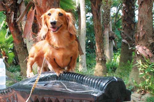 | 超級炎熱的天氣連迷你臘腸「阿福」都要藉「食人鱷」避避暑氣 |