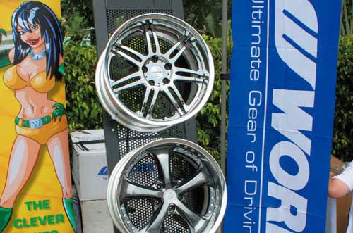 | 在中區主辦單位召集下活動會場除了有Work輪圈、KW懸吊與進口煞車展示陳列,特別贈送的8萬元輪圈折價券更是羨煞旁人目光 |