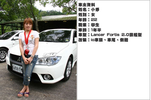 | 每天開著LANCER FORTIS上學,省油的性能讓她讚不絕口。 |