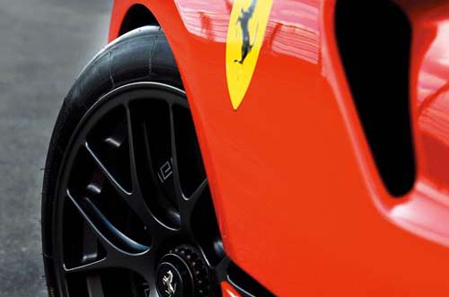 第二代SCM主動式電子避震器:懸吊亦是599 XX另一項重點,車上的第二代SCM主動式電子避震器以競賽用途所規劃,煞車則換上全新設計的競賽用陶瓷碳纖系統,在增加制動效能而大幅縮短煞車距離的同時,尚具備減輕重量負荷及抗高溫的特性。輪胎則採用前29/67R19與後31/71R19的光頭胎。