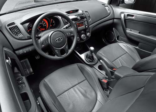 有別於外觀的搶眼活力,內裝的格局就顯得讓人失望,灰色調與中規中矩的控檯設計顯得太過保守,方向盤造型跑味也不夠,在性能化車艙的營造上未能與外觀相呼應。不過配備水準上卻相當頂級,除了主、被動安全系統完善外,多功能方向盤、藍牙通訊及支援i-Pod等外接音源等一應俱全。Kia Forte Koup預計在今年夏季末於北美市場販售,正式售價亦未公佈,國內導入的可能性幾近於零,有興趣的車迷求助貿易商還比較快。杜嘉豪