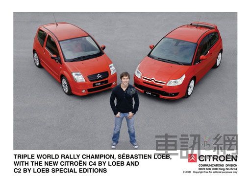 為了慶祝拿下WRC冠軍,CITROEN為Loeb推出了C4及C2兩款特仕車。此兩款特仕車只提供了紅和黑的選擇,這樣熱血的設計不只表現在車色上,內裝也是用這兩種顏色來沸騰駕駛者的熱血。除了在車尾加上“By Loeb”的專屬標誌外,車門也多了專屬貼紙及同車色的照後鏡。C4搭配了17吋輪圈及大尾翼,C2則隨著車小了一號而使用16吋輪圈。在性能方面維持不變,至於這兩部車在添加了這些裝備後能不能跑的跟Loeb一樣快?當然還是不可能。