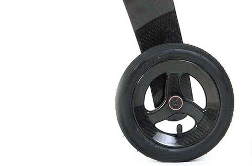 | 全車碳纖維材質,就連小小的後輪亦採用「板輪」與內胎充填方式,設計十分講究 |