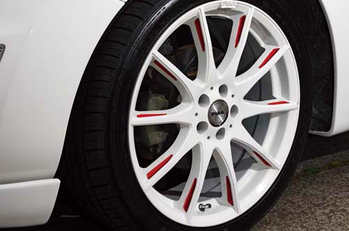 | PIAA輪圈與車身同為白色塗裝,輪輻側邊的孔洞則以紅色進行強調點綴 |
