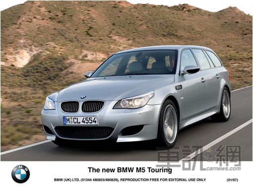 在BMW公佈5系列的小改款中,最受矚目的就是M5 TOURING。 有別於上一代M5 TOURING(E34)只有左駕版,本次在底特律車展發表的E60更是多了右駕的版本。既然是旅行車, 當然也多了許多空間上的變化, 高達1650公升的行李空間則可讓全家出外遊玩更加便利。與四門版同樣是搭載5.0 V10的引擎,使用獨門的SMG Drivelogic七速序列式手排變速箱提供了507匹的最大馬力,從0加速到100只需要4.8秒,比起四門版也只慢了0.1秒。搭配上三階段的DSC動態穩定系統,可調整關閉一般或動態模式以及EDC的電子懸吊讓新M5的操控極限隨之變大。