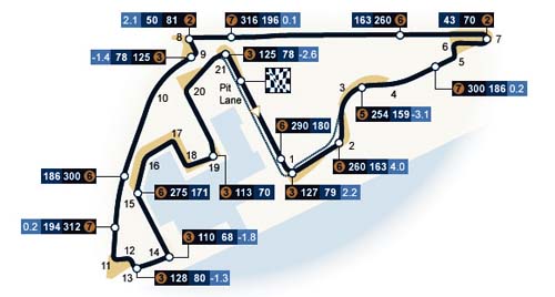 賽道所在地的亞斯碼頭,位於阿布達比約200座島嶼其中的亞斯島上,雖然與歐洲站的西班牙瓦倫西亞同樣位於港邊,但本站並非街道賽、而是去年秋天才完全從無到有建起來的特設賽道,也是今年繼土耳其、歐洲、巴西之後的第四站逆時針方向賽道。