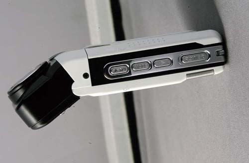 | 機身上半部可向後搖擺,方便使用者調整鏡頭拍攝角度,側邊則設有許多控制按鍵 |