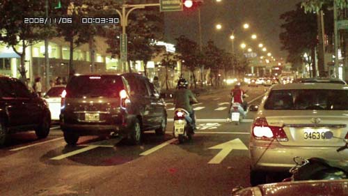 由於DOD F200HD並非是專門用來行車紀錄之用,因此諸多設計使用起來較為不便,例如:固定架螺絲接口設在機體下方,安裝在前擋時不容易找到合適的安裝位置,加上畫質全開的話無法變焦鏡頭,鏡頭焦距又不夠,只能拍到車頭前方影像,不過這些缺點在其高品質的畫面清晰度與多功能化的設計下,筆者認為或許可以忽略,因為它拍攝出來的畫面真的相當清楚。雖然不像中型HD DV般色彩艷麗、還原度高,但只要電視螢幕夠大,前方2.5公尺遠的車牌都可看得一清二楚,定格時的清晰度也是沒話說,用這台來比其他的產品簡直就是「犯規」的作法。至於晚上的影片效果呢?在車頭燈的照明下,影片的效果同樣清晰,不過或許是因為不是專門開發夜攝使用,因此顆粒就純行車紀錄器還要明顯,這是較美中不足之處。