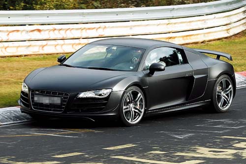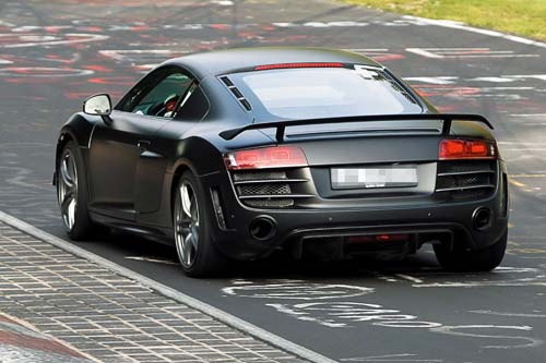 在車頭的部份可以發現前氣壩的造型經過些許修改,並在保桿兩側的角落追加小型側擾流翼:車尾下方的散流器尺寸則經過加大,原本一般R8車上的電動升降擾流翼則被大型固定式擾流翼所取代。內裝部份雖然看不出太多的端倪,但從後窗望去,安裝於座位後方的板狀散熱片顯得十分特別,但這或許僅是測試車所使用的暫時性配備,但也有可能是因為內裝進行減重而特別追加的散熱裝置。