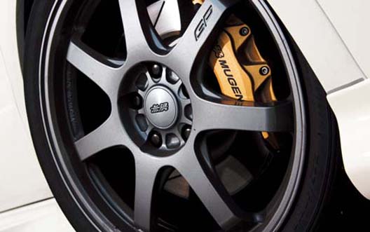 除了動力提昇之外,本車也搭載了附快排的密齒比六速手排變速箱,配合輕量化的車身後,預估0~100km/h加速應有6秒的實力,極速甚至能直逼240km/h。此外,Civic Type-R Mugen的另一個強項─操控性,無限特別為它配置了限滑差速器、加硬減震筒、短彈簧、鋁合金懸臂等武器,且輪圈為每只重量僅7.85公斤的鍛造製品(比原廠輕32%),藉此大幅減低簧下荷重,如此配上225/40/18的RE070跑胎、四活塞卡鉗組合前320/後282mm劃線碟的升級後(Brembo代工),山路上肯定是一等一的好手。