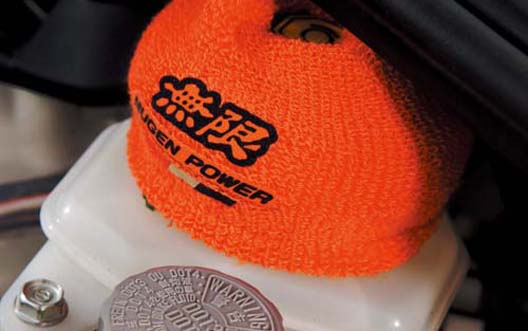 | 無限賽車常見的鋁合金機油蓋、煞車總泵縮護套都在本車上見到,競技血統可說一覽無遺 |
