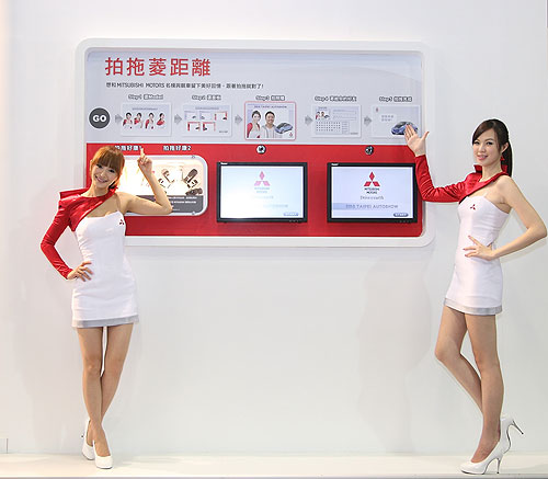 此外,MITSUBISHI架設兩台「拍拖菱距離」拍照機,讓車迷一圓名模合影美夢,還可獲得車展最夯的贈品「i地球時尚環保筷」(共七色,隨機贈送一只) ,開展四天已累積近萬名車迷搶著體驗。同時將照片現場mail給好友,收到拍拖照片的朋友只要在車展期間,持車展門票與列印出來的照片至MITSUBISHI服務台,還可兌換精美「迴力車」乙台!